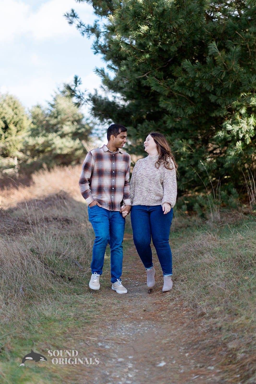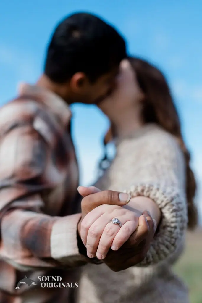 Discovery Park Engagement, in the center of Seattle, provides prospective spouses like Brianna and Vishnu with a charming environment. As one of the city’s largest parks, Discovery Park boasts stunning views of Puget Sound. It also features acres of lush greenery and winding trails that lead to hidden corners perfect for stolen kisses. Towering trees offer a natural canopy under which lovebirds can wander hand in hand. The sound of the waves crashing against the shore creates a serene backdrop for whispered promises.