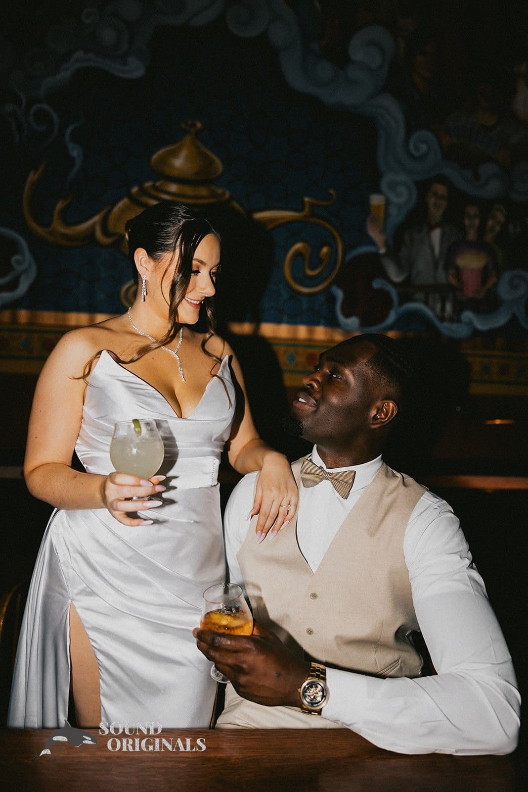 We’ll show you Faith and Silvere’s McMenamins Backstage Bar Engagement. The warm, welcoming ambiance of McMenamins Backstage Bar, tucked away in the center of Portland, is ideal for honoring love. This location creates a memorable atmosphere with its rustic décor and vintage charm. As Faith and Silvere explored the space, their laughter reverberated through the hallways. They exuded pure joy. Anticipation glistened in their eyes as they thought of their future together.