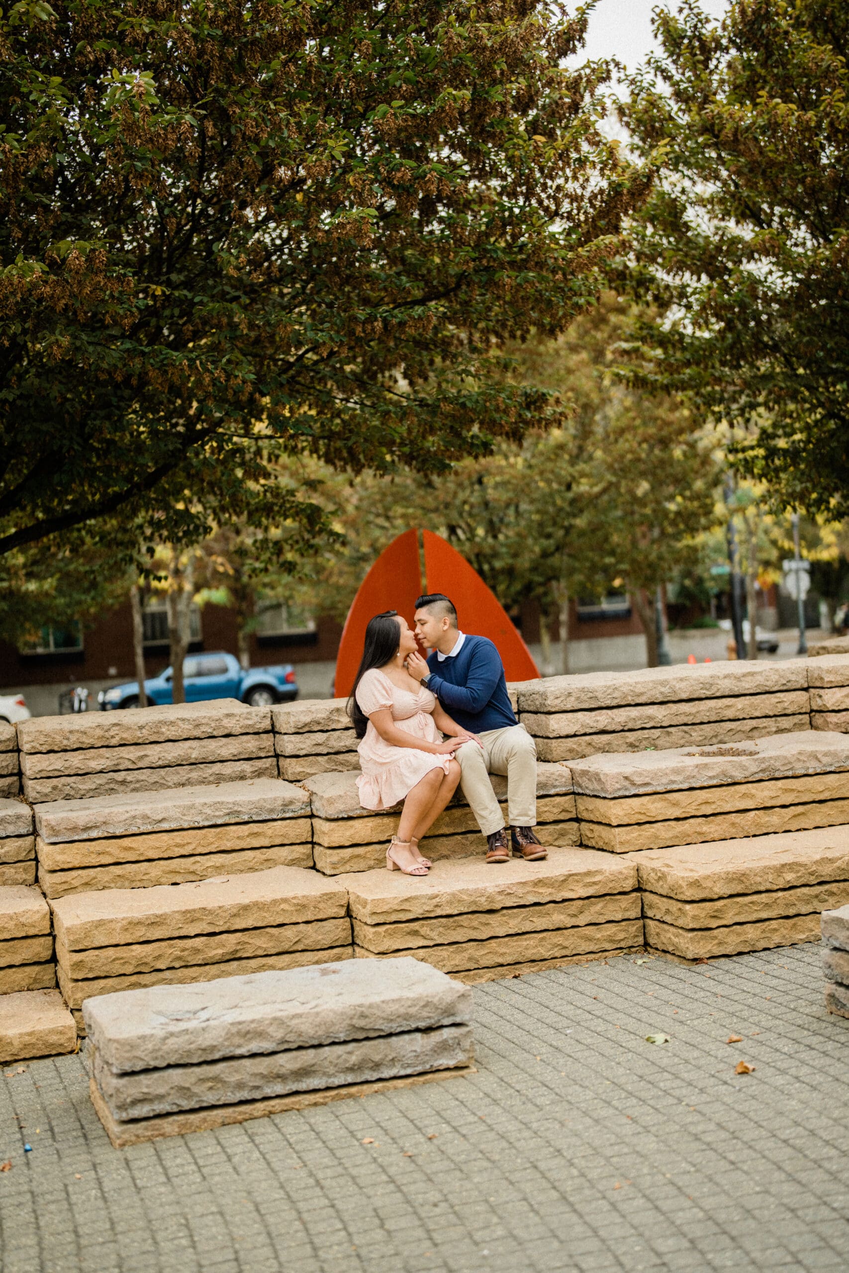 Downtown Portland is one of the most beautiful places for engagement photos. From the waterfront park to the bridges and the streets filled with trees, each spot adds its own character. Jerri and Louie’s engagement reminded us how special this city is for couples who want something both romantic and modern.