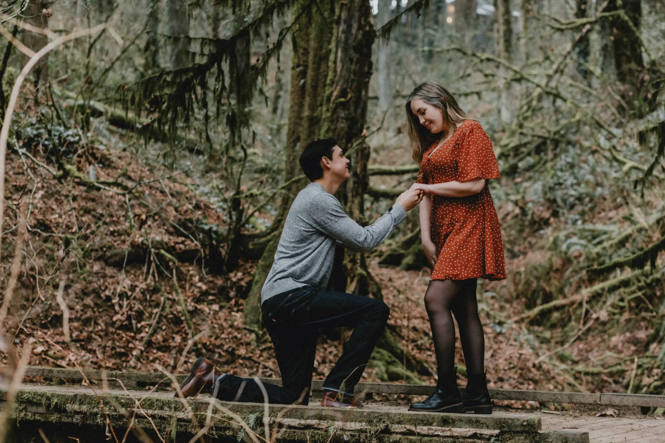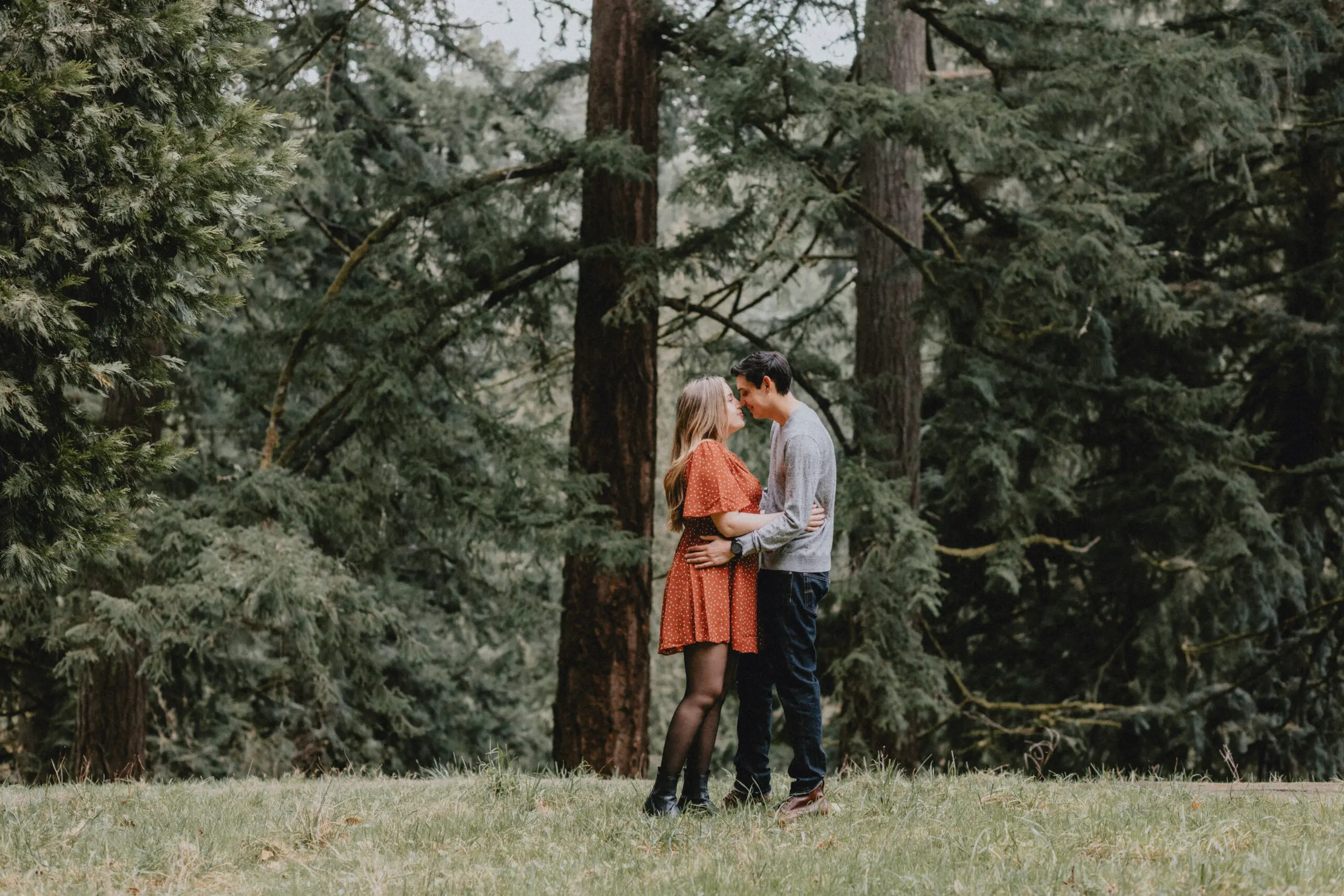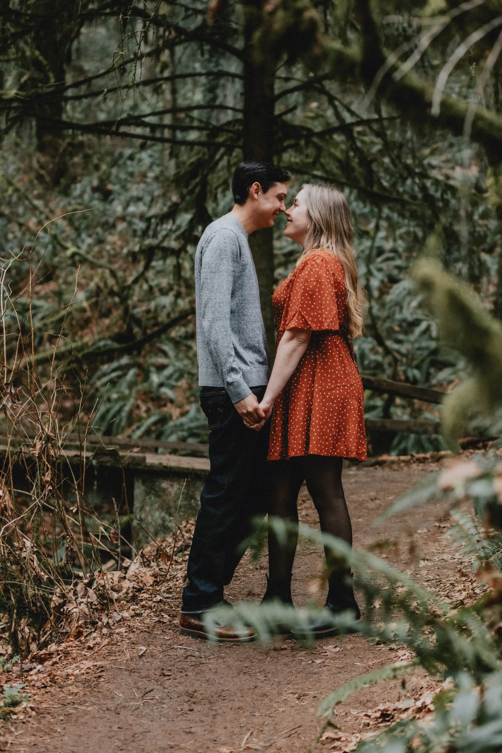 - Forest Park: Towering evergreens and winding trails create an intimate, fairytale setting. The soft mist that often fills the air brings the perfect atmosphere for moody engagement photos.
