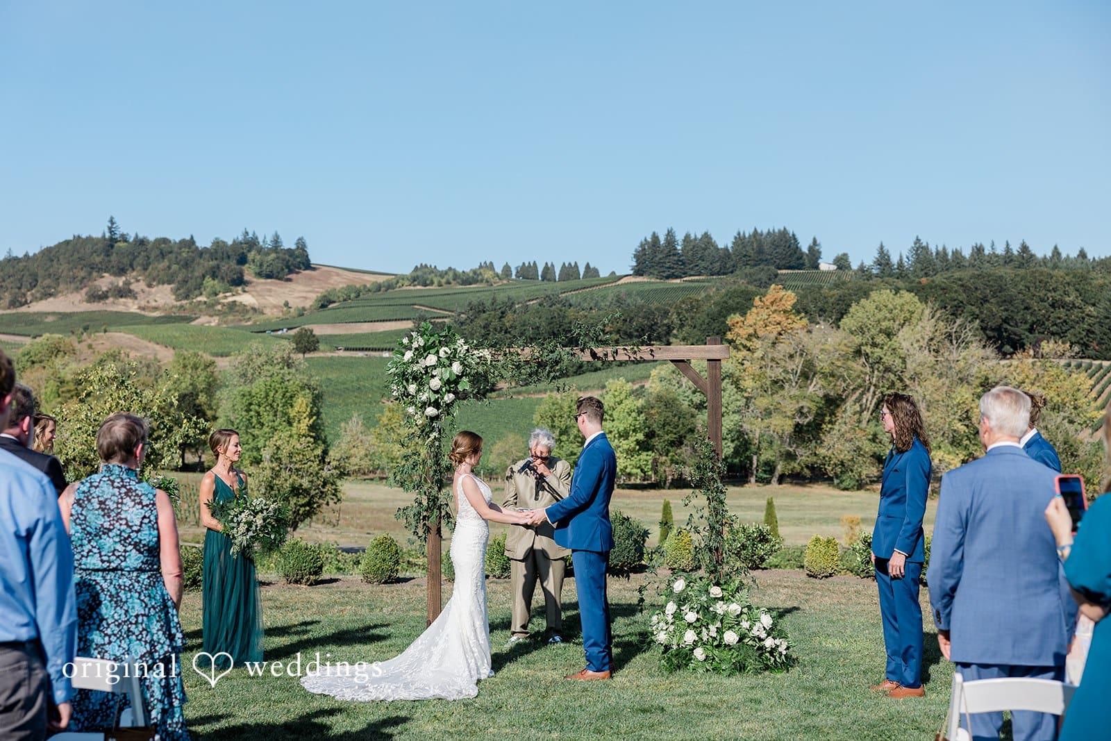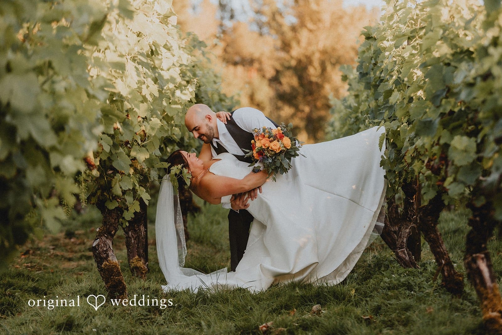 Set in the heart of Willamette Valley, Zenith Vineyard radiates rustic sophistication. Early fall transforms the vineyard into a canvas of golden rows and sunlit hills, making it one of Portland’s prettiest early-fall photo spots. The combination of natural beauty, structured terraces, and warm autumn light creates a perfect environment for both heartfelt portraits and cinematic wedding films.