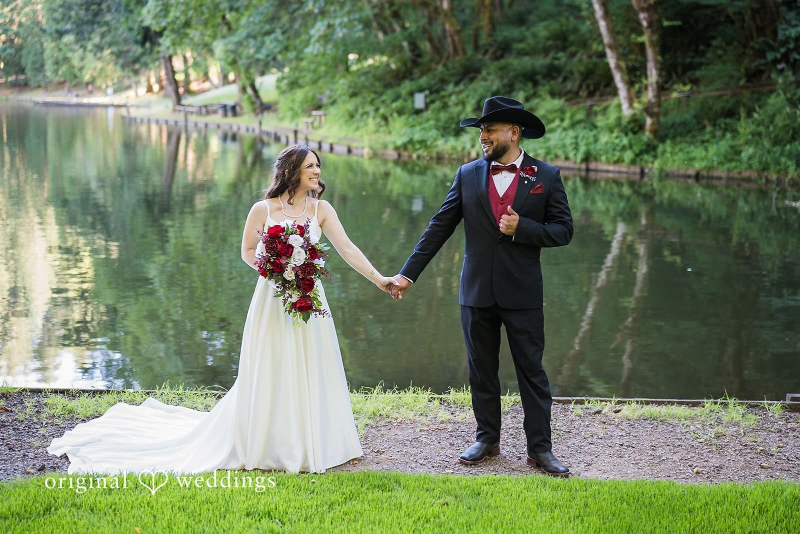 Tucked away in a secluded valley, Horning’s Hideout feels like stepping into a fairytale. Early fall transforms this forested venue into a glowing sanctuary, with golden leaves, towering evergreens, and a peaceful lake reflecting the season’s colors. It’s one of Portland’s prettiest early-fall photo spots for couples who dream of a whimsical, storybook wedding surrounded by nature.
