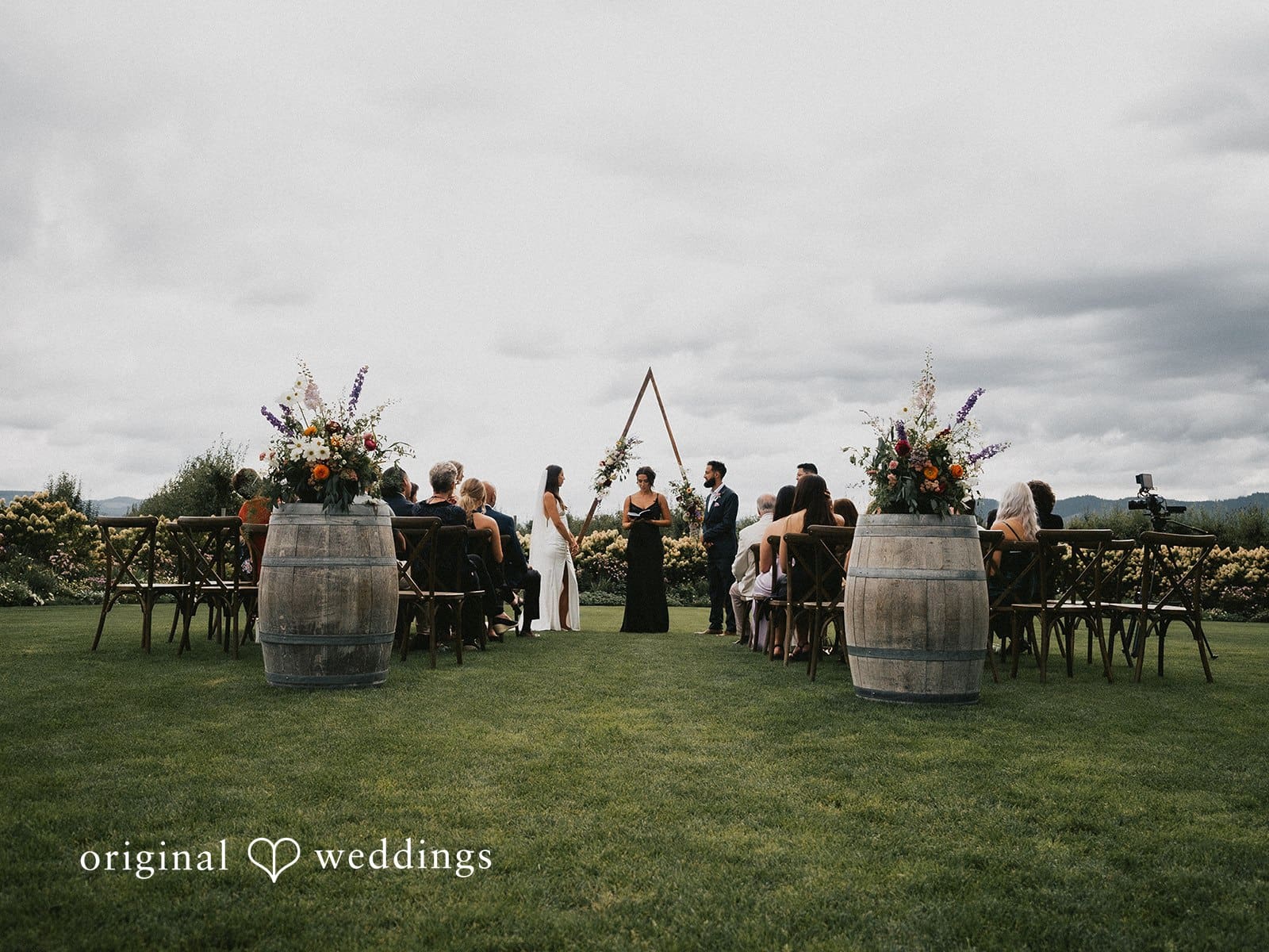 From a photography and videography perspective, The Orchard Hood River offers endless opportunities for creativity. Vine-covered paths, orchard rows, and wide-open spaces allow us to capture both intimate details and expansive, cinematic landscapes. The seasonal foliage adds depth and richness to every frame, making weddings here particularly memorable.