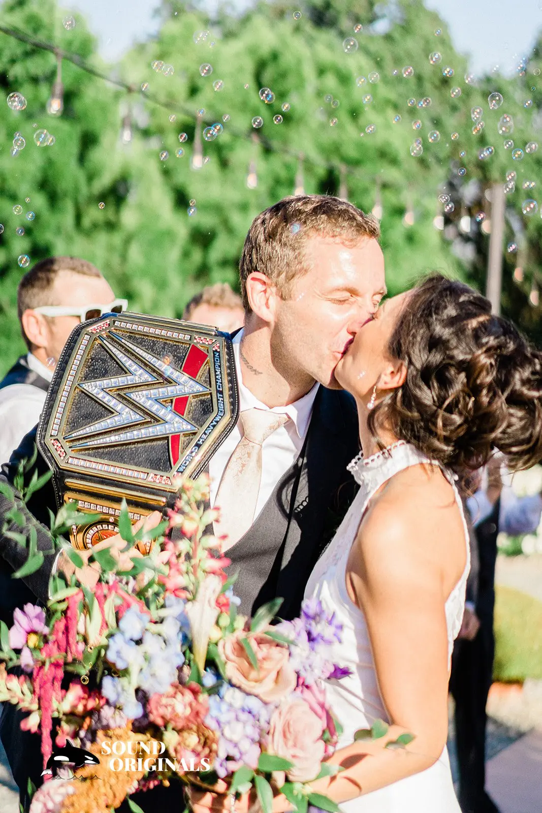 Jennifer, the stunning bride, walked down the aisle in a magnificent wedding gown crafted by the talented Polina Ivanova of The Stylish Bride. The groom, Matthew exuded charm and charisma, proudly sporting a dark gray suit. The couple’s infectious fun-loving spirit was evident throughout the festivities. Matthew playfully carried a wrestling belt, adding a touch of lightheartedness and showcasing their unique bond.