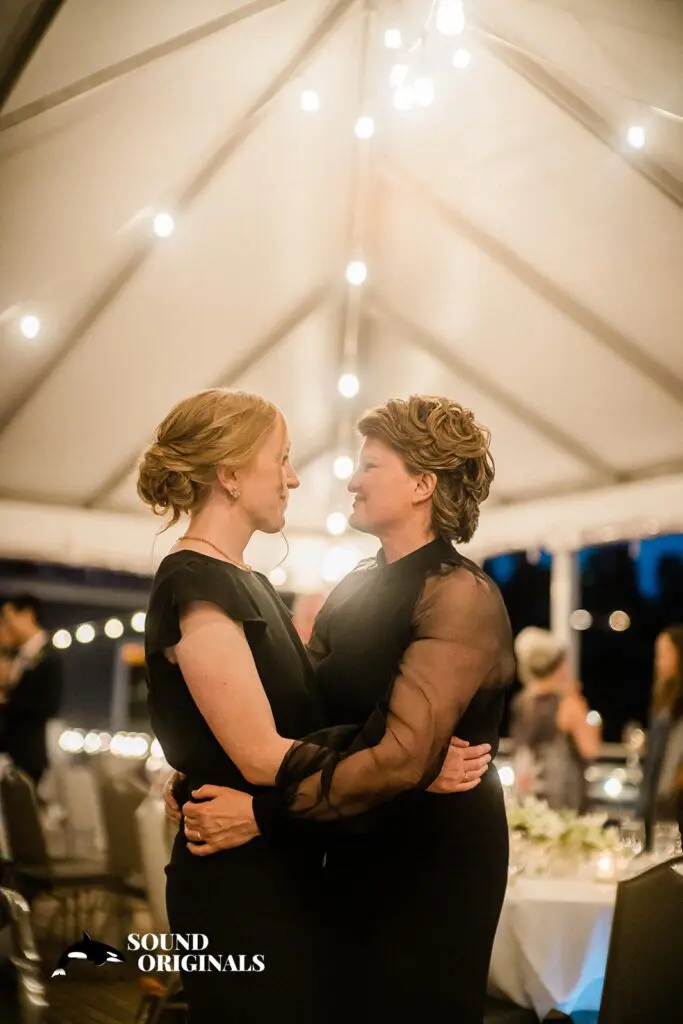 Fiona and Georgia looked gorgeous in their wedding portraits. We captured beautiful moments as they greeted their guests, had an intimate photoshoot together, during the ceremony, and the reception as well. Our professional wedding photographer loved the incredible opportunities this restaunrant offers for stunning portraits! The ceremony took place on the dock. As the couple vowed their love to one another, we enjoyed the stunning views of the Pacific Northwest. The reception, of course, was to follow. Everyone enjoyed fresh seafood from Ray’s Boathouse and raised their glasses in celebration. After dinner, Fiona and Georgia melted our hearts with their sweet first dance. It was a truly special evening, and we are so thankful to have been a part of it!