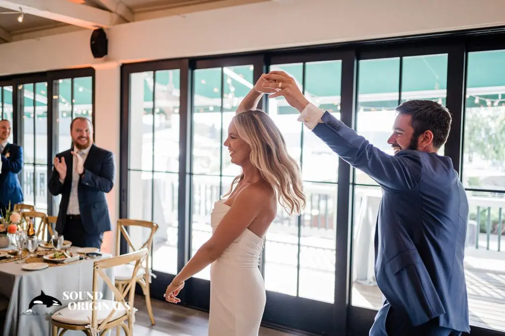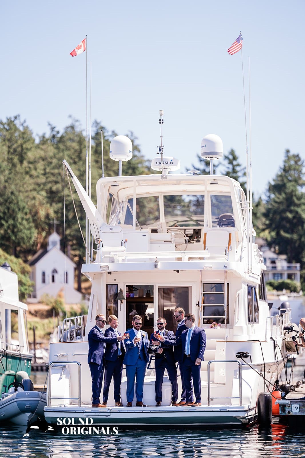 As the day turned into night, the venue transformed into a dancefloor illuminated by the vibrant energy of the Magnolia Rhapsody band. The couple’s first dance was a mesmerizing moment. After cutting the wedding cake, they celebrated love again and the air filled with cheers and applause. As the celebrations concluded, Kassie and Brooks’ Roche Harbor Resort wedding embodied love, happiness, and a beautiful forever.