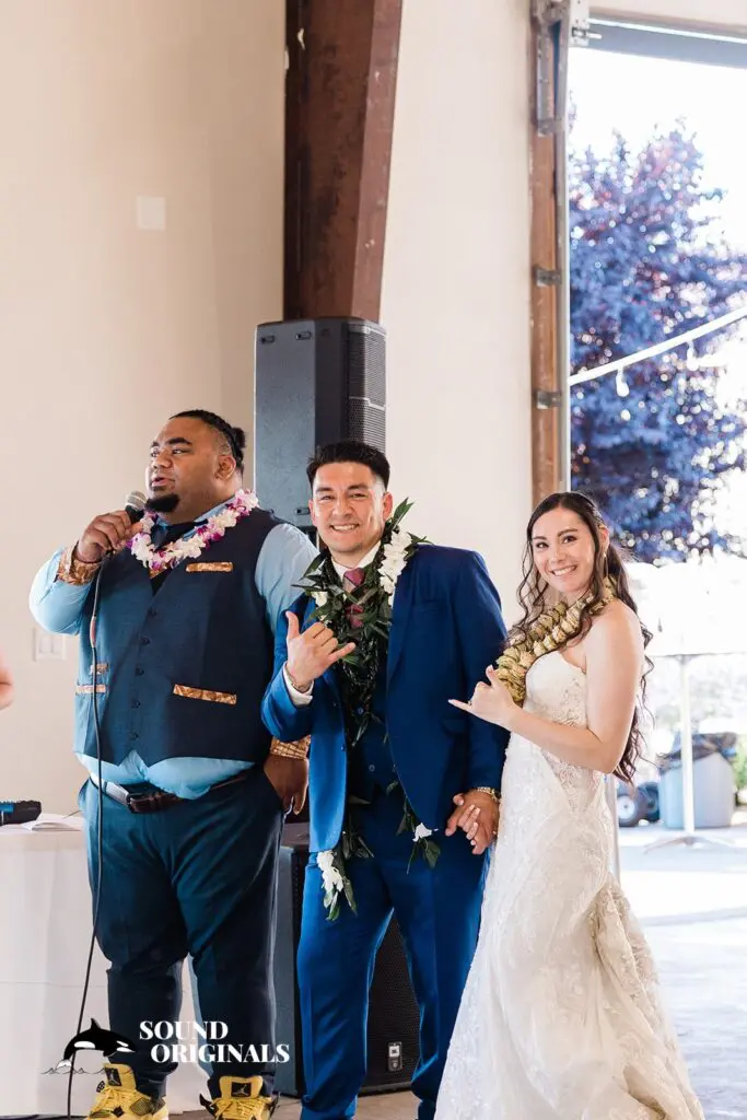 The reception unfolded in the venue’s charming barn, marked by superb organization and stunning floral arrangements by Emma Bryant, coordinated by Sarah Manning. Guests enjoyed exquisite meals from Hina’s Island Grindz and delightful desserts from Churros Locos by Daniel Huerta. The celebration peaked as DJ Koni Latu energized the dance floor, ensuring a lively and memorable evening.