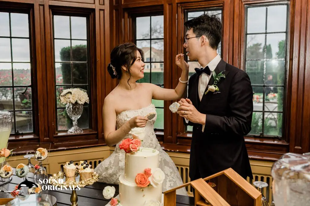 The intricate staircase, gallery hallways, and historically elegant dressing rooms were the perfect backdrop for the get-ready photos and the first look. The couple got a horse carriage ride prior to their ceremony. It was a beautiful moment to get on camera – our professional wedding photographer rarely gets to experience such a fairytale! The ceremony was outdoors in the lovely gardens. The statue parapet was the perfect spot for the couple’s vows and first kiss. Next, we took some breathtaking wedding portraits before proceeding to the reception. Can you believe these magical photos our photographer captured of Yizhou and Xianoyun’s love story?