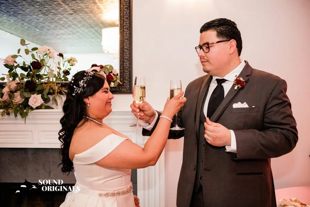 Alexis and Vanessa prepared separately with their wedding parties, anticipation mounting with each passing minute. Vanessa descended the grand staircase before we ventured outside for scenic portraits. Their genuine affection radiated through every romantic photo, accentuated by the charming LOVE sign outside, a perfect photography backdrop. We captured stunning photographs of the couple throughout the venue’s picturesque spots before it was time for their heartfelt “I do.”