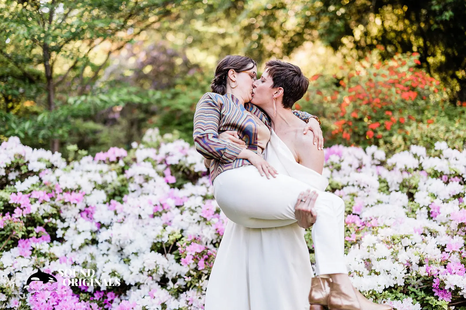 Megan and Rachel’s Wisteria Hall Wedding is something we can’t wait to tell you about! Located in the captivating Washington Park Arboretum in Seattle, this venue provided the perfect backdrop for their special day.