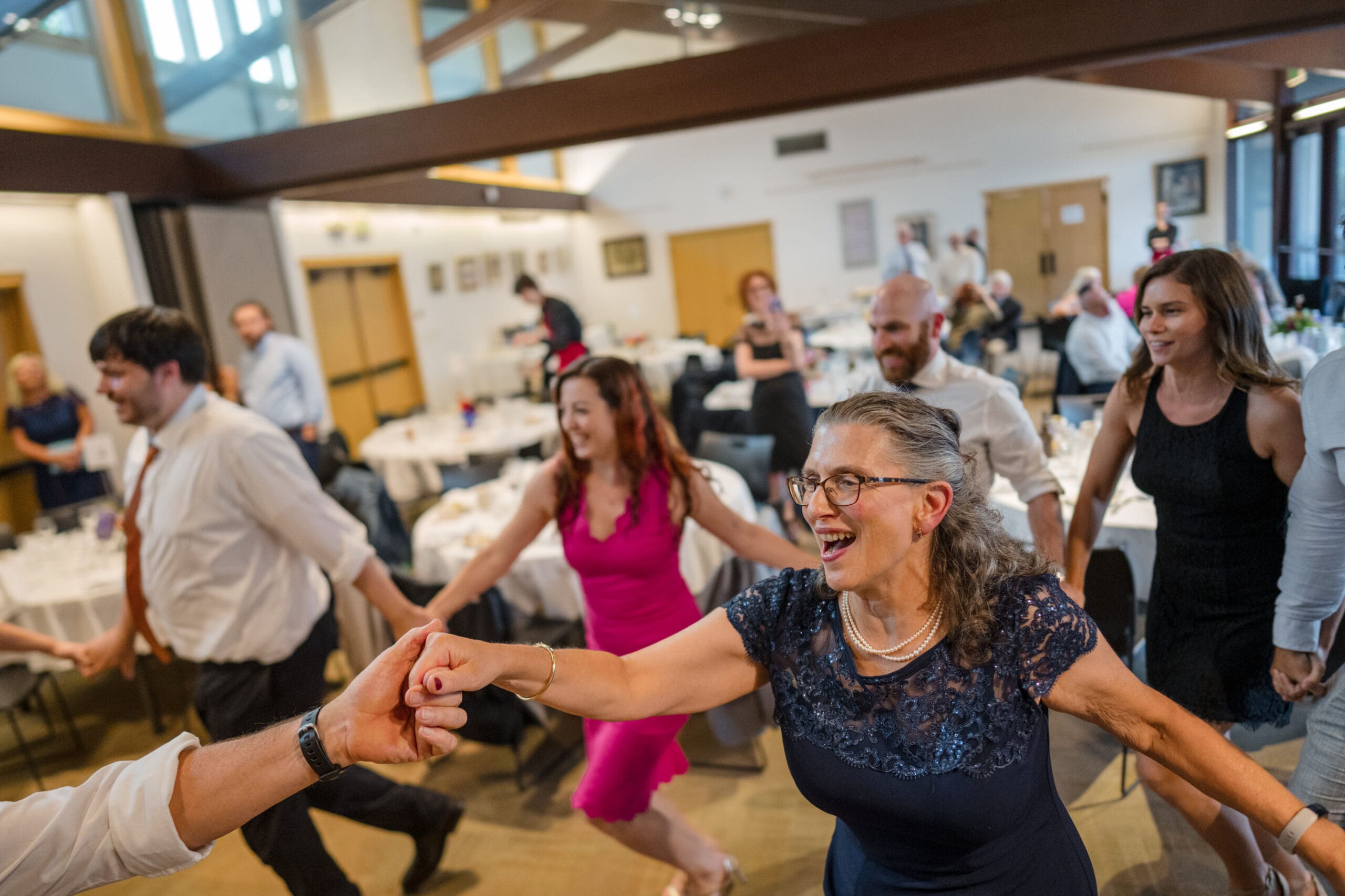 Hora Dance: Guests lift the couple on chairs while dancing in a circle.
